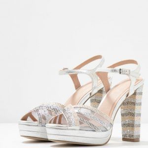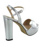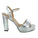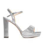 Sandalia en color plata claro. Sencilla pero elegante y muy cómoda. Altura del tacón 11cm y plataforma de 1,5cm.